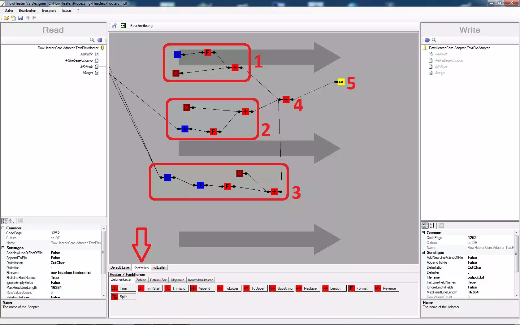 Mit diesem Beispiel möchten wir Ihnen die Verarbeitung von CSV Kopf- bzw. Fußzeilen mit Hilfe von FlowHeater Parametern veranschaulichen.