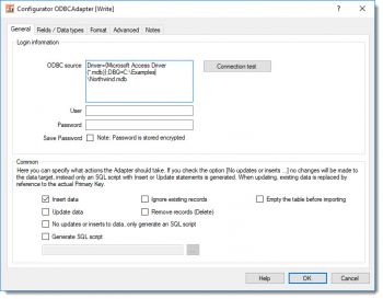 The ODBC data source Adapter is used to import (insert), export (select) and amend (update) tables from any chosen ODBC source. As well being attached to the READ (export) side, the Adapter can also be used on the WRITE (import) side. The only prerequisite is an installed ODBC driver for your data source.