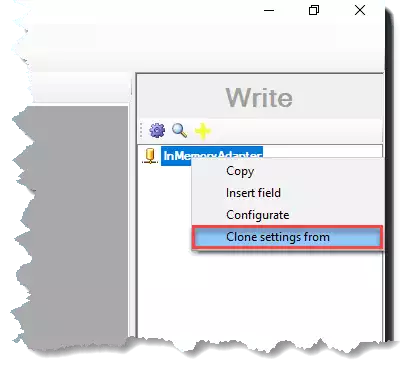 Now position your mouse cursor in Designer over the SQLite Adapter on the WRITE side (do not open the Configurator yet) and select with a right mouse click "Adopt the READ fields" option.