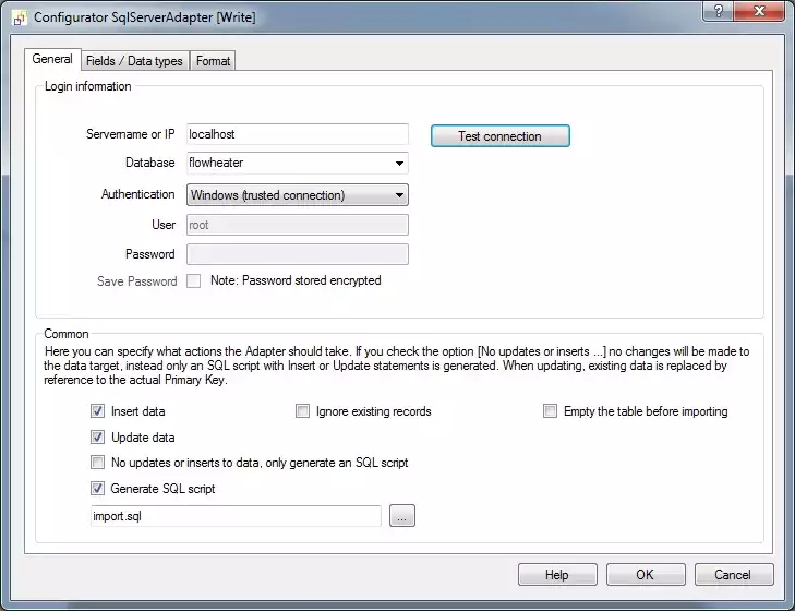 SQL Server connection propertiesTerminate the popup window with OK and open the Configurator for the WRITE Adapter.